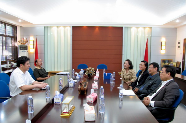 7 月16 日下午,泰国庄甲盛叻察帕大学校长Suchart Muangkoew 一行 4 人在厦门市思明区侨联主席周幼玉的陪同下访问beat365中文在线官网华文学院。华文学院党总支书记兼副院长赵明光、副书记张灯在 1 号楼会议室会见了访问团一行。