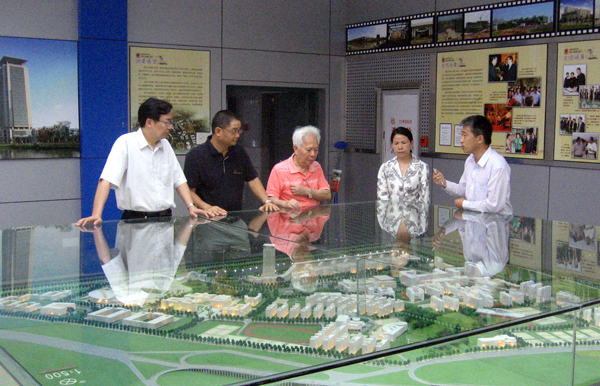 副校长刘塨在行政研发大楼 21 层会议室会见颜泽贤校长一行,并陪同客人参观厦门校区模型室,向客人介绍了厦门校区的建设和发展情况。