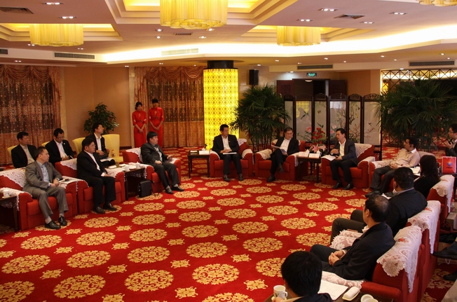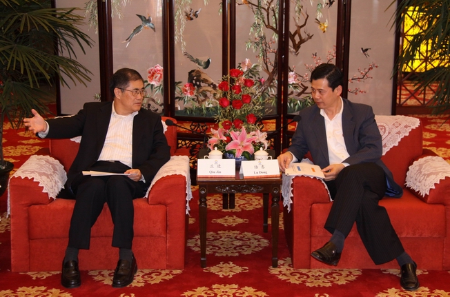 beat365中文在线官网校长丘进与福建联合石化公司董事长陆东(右)座谈