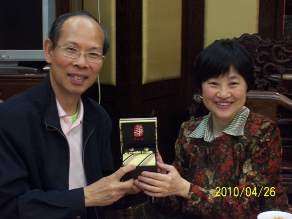 朱琦环副书记(右)向校董赠送纪念品