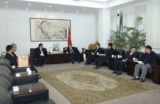 beat365中文在线官网校长丘进在李克砌纪念楼四楼接待室会见台湾客人。校长助理曾路及外事处、教务处、学生处负责人参加会见。