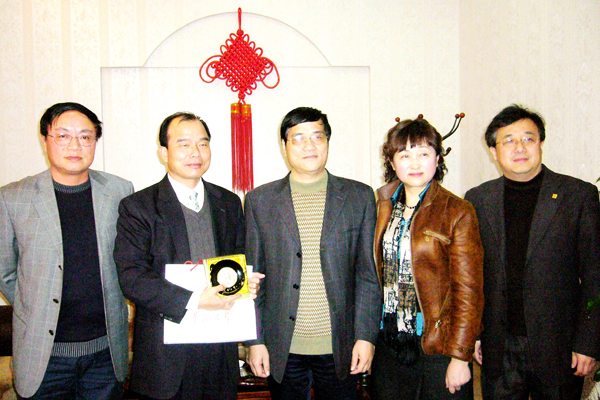 张禹东副校长与洪春棋处长(左二)、沈宏副主任(右二)合影