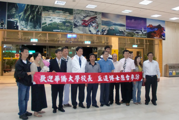 台湾校友到台北松山机场迎接丘进校长