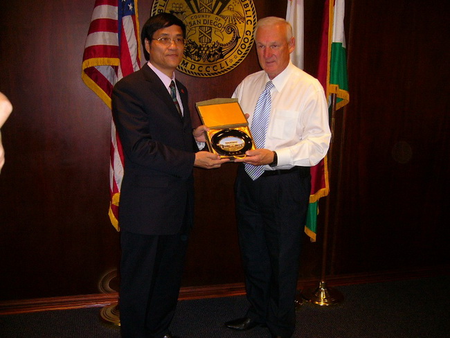 拜访圣地亚哥郡最高行政长官罗伯茨先生(右)