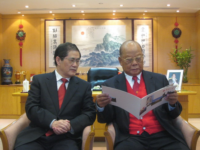 丘进校长(左)拜访曾宪梓先生