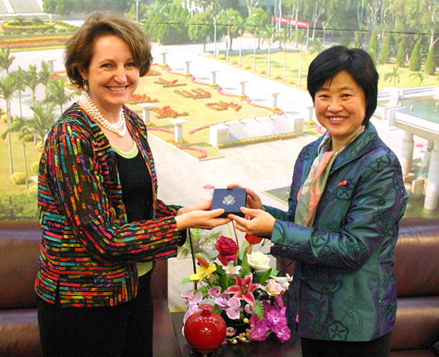 美国驻华大使馆一等秘书MaryKay Loss Carlson女士今天下午莅临beat365,校领导朱琦环在陈嘉庚纪念堂接待室热情会见了来访的Carlson女士一行。
