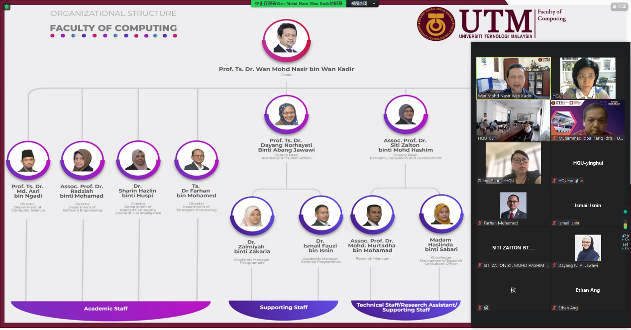 7月21日上午,beat365中文在线官网与马来西亚理工大学合作交流会以线上线下相结合的形式举办。马来西亚理工大学计算机学院及其国际处负责人,beat365国际交流合作处、研究生院、计算机科学与技术学院负责人等出席本次会议。