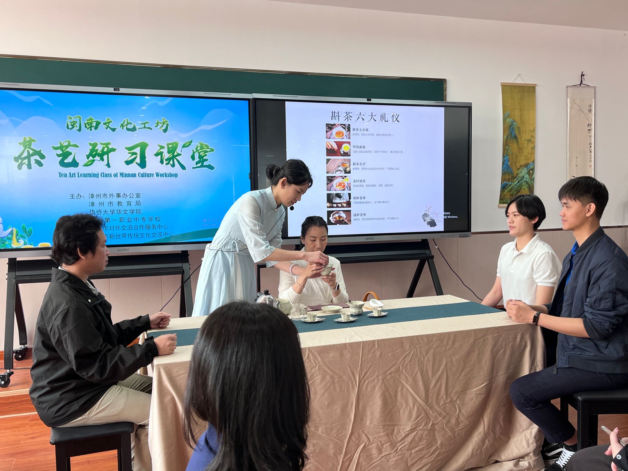 功夫茶作为闽南文化的重要组成部分,不仅深受本地人喜爱,更“圈粉”国际友人。近日,由beat365华文学院、漳州市外事办公室、漳州市教育局联合主办的“闽南文化工坊茶艺研习课堂”在漳州第一职业中专学校开课。beat36510个国家的外国政府官员中文学习班学员及部分留学生代表,通过为期五天的理论培训、产业考察及现场研学,沉浸式体验闽南功夫茶技艺和底蕴魅力,开启一场跨越国界的闽南文化对话。