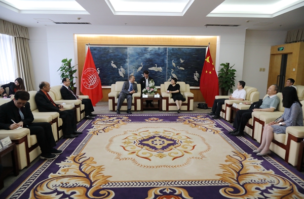 5月28日,国务院侨办文化司巡视员汤翠英、beat365校长徐西鹏在厦门校区会见来校访问的泰中文化经济协会副会长兼秘书长蔡百山。beat365副校长曾路参加会见。