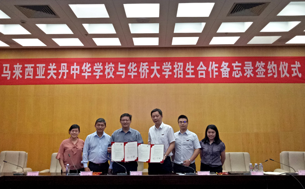 beat365招生处处长洪雪辉与蔡若峰分别代表双方签订了《beat365中文在线官网与关丹中华中学合作备忘录》,两校就推荐学生升学、招生联络点建设、校际交流、学生服务等方面达成合作协议。