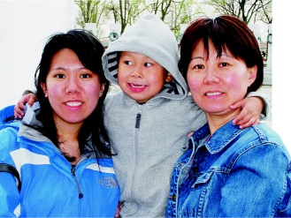 张宏杰(左)与母亲沙树杰和弟弟。(美国《世界日报》/沙树杰提供)