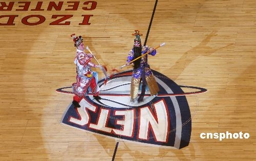 当地时间3月8日晚,美国大纽约地区“2009中华之夜”晚会在NBA新泽西网队主场举行,在NBA赛场吹出一阵“中国风”,赛间休息时的传统京剧表演令许多美国球迷倍感新奇。 中新社发