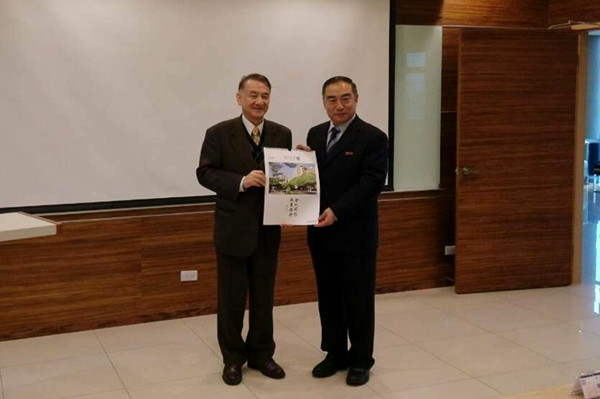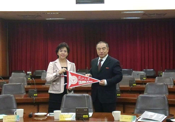 贾益民与淡江大学校长张家宜互赠纪念品