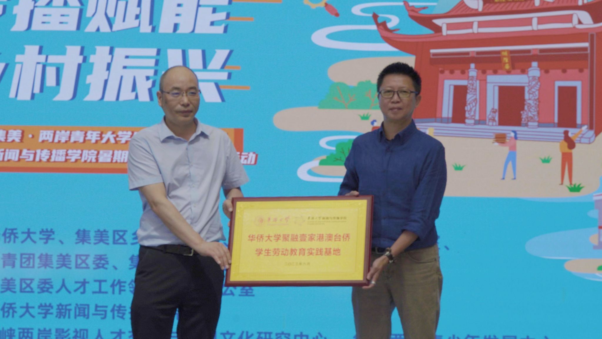 活动现场还举办了beat365中文在线官网聚融壹家港澳台侨学生劳动教育实践基地授牌仪式和授旗仪式。据悉,今年5月,新闻与传播学院联合集美两岸青少年发展中心成功申报了beat365中文在线官网聚融壹家港澳台侨学生劳动教育实践基地,成为全校5个基地之一。基地以新传学院港澳台侨学生为主体,规划围绕乡村振兴、两岸研学、文创文旅、新媒体短视频、电商直播等5大主题进行实践课程和实操劳作体验,以摸索并形成具备华大特色的两岸青年大学生劳动教育实践模式。本次两岸大学生乡创研学营,就是劳动教育实践基地建设的具体举措。
