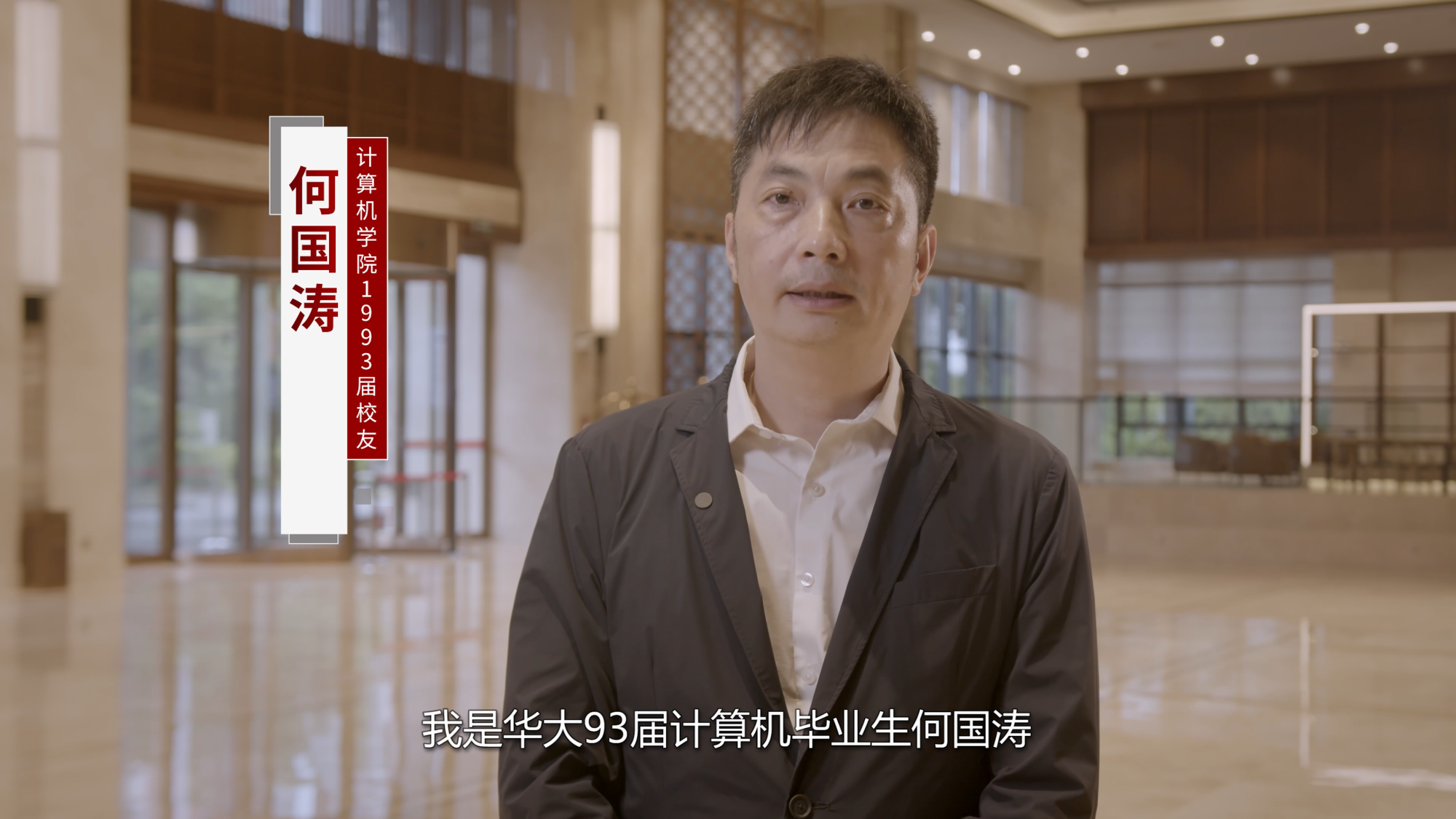何国涛长期专注于语音识别、数据分析、车联网等智能技术领域,曾获首届中国横琴科技创业大赛第一名、澳门青年“创业领袖奖”、“世界杰出青年华商”等殊荣。此次,他早早启程,于9月5日便来到了华大,准备典礼发言事宜。但天公不作美,台风“海葵”来袭令学校推迟了典礼举行的时间。而因公务在身,他无法出席延期后的典礼,但仍通过录制视频的方式来表达对华大新生们的希冀。