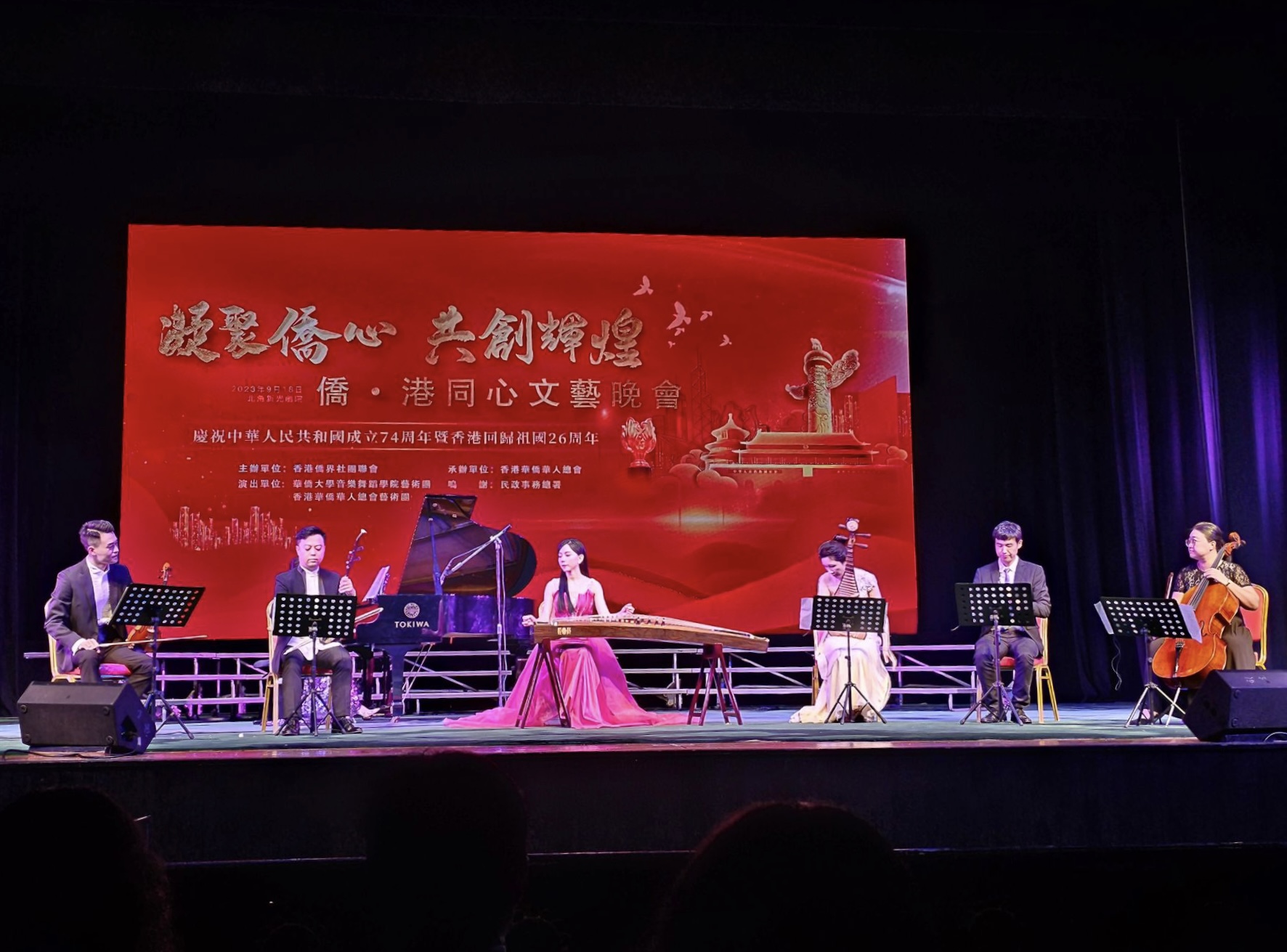 庆祝中华人民共和国成立74周年暨香港回归26周年“凝聚侨心 共创辉煌 侨‧港同心文艺晚会”,9月18日晚在香港新光戏院大剧院上演。晚会由香港侨界社团联会主办,香港华侨华人总会承办,beat365中文在线官网音乐舞蹈学院艺术团和香港华侨华人总会艺术团联合出演。