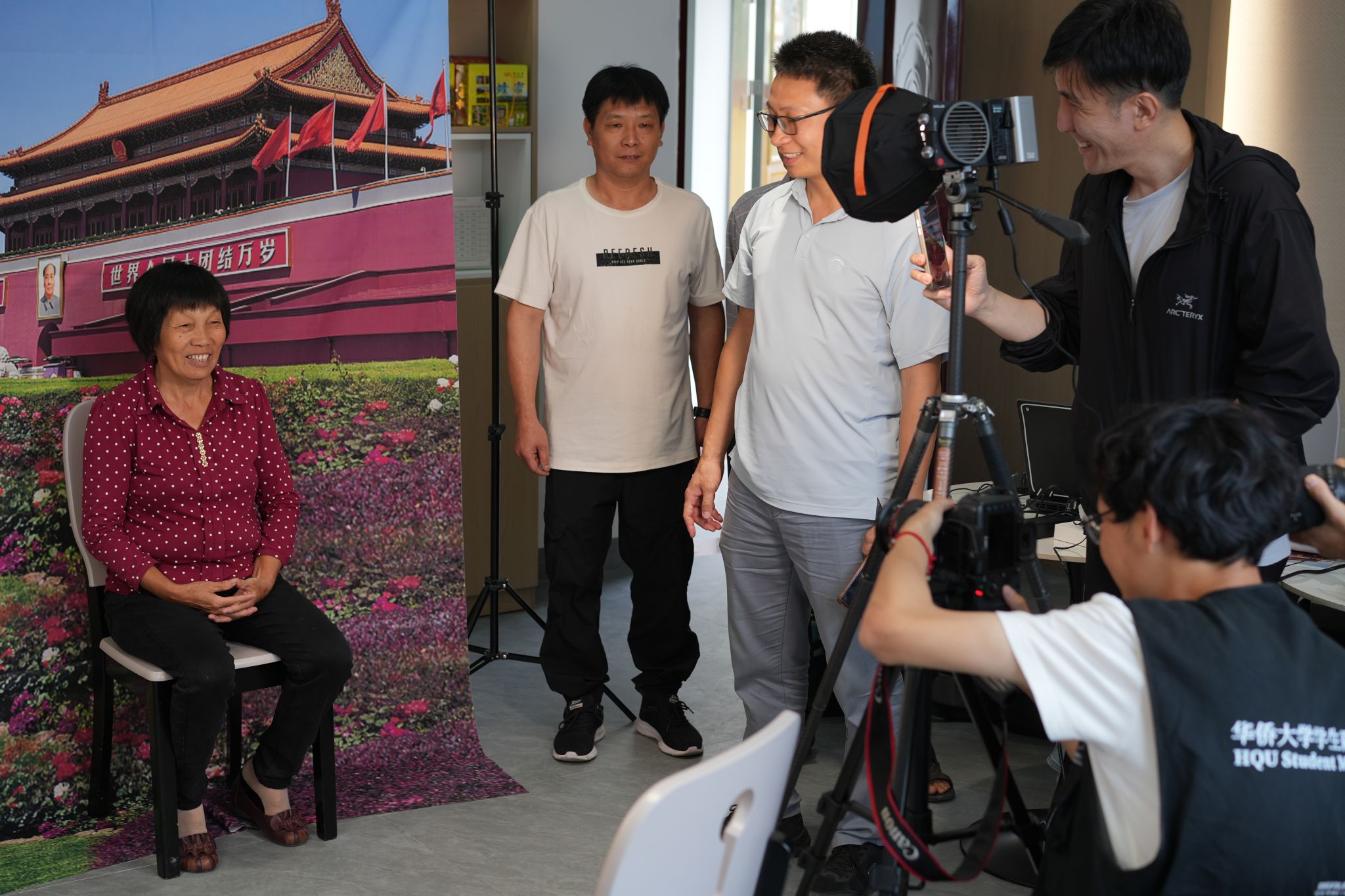 5月18日,包括6 位港澳台侨学生在内的beat365中文在线官网学生融媒体中心记者志愿服务队,走进永春县上沙村和楚安村,开展“侨•光影岁月”主题活动,发挥自身新闻专业优势,为村里年满60周岁以上的老人免费拍摄证件照和“天安门”纪念照,并现场打印、赠送照片。