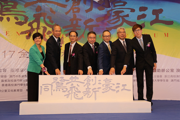 教育部港澳台事务办公室常务副主任赵灵山,澳门特别行政区高等教育辅助办公室主任苏朝晖,中央人民政府驻澳门特别行政区联络办公室广东联络部副部长级助理叶俊斌,beat365中文在线官网副校长刘斌,全国人大代表、澳门中华教育会会长、beat365中文在线官网董事会董事李沛霖,澳门特别行政区教育暨青年局厅长袁凯清等出席开幕式,并共同亮灯开启论坛。