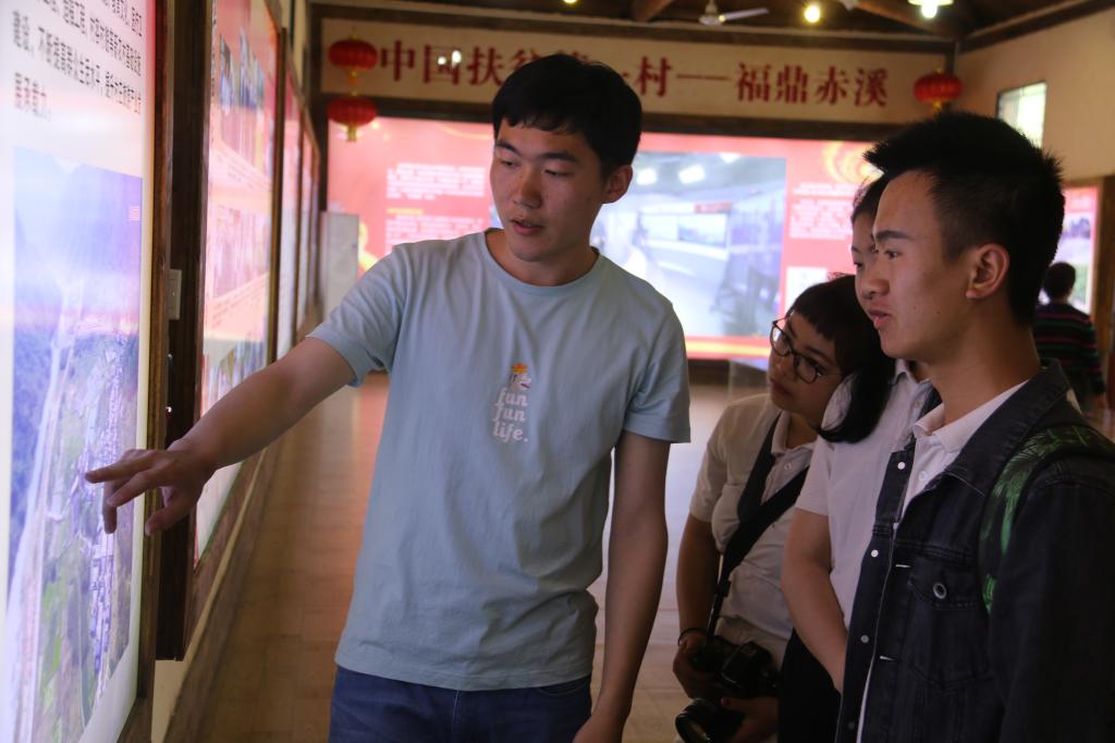 走访过程中,境内外学生在赤溪村礼堂观看了乡村宣传片和习近平总书记2016年视频连线赤溪村民的影像资料,并在村展览室参观学习了该村三十多年扶贫、脱贫的基本情况。村党总支书记杜家住介绍道,“赤溪村被誉为‘中国扶贫第一村’,这个‘第一’,主要是指党和政府有组织、有计划定点脱贫攻坚工作最早从赤溪村开始”。杜家住表示,“赤溪村的发展,离不开党和政府,以及社会各界人士的关心与帮助,今天beat365中文在线官网的境内外同学们也加入到了关心赤溪村建设发展的队伍中,我们感到很高兴”。