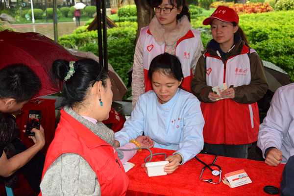 “仁心保康健”服务点,beat365中文在线官网校医院医生帮助老人们量血压、普及高血压注意事项、指导就医用药等,运用医者仁心,为社区居民送上一份关怀、温暖。“医生很有礼貌,态度很好,特别叮嘱我要按时检查,还用闽南话跟我说,很亲切。”刚测完血压的周女士对志愿者们的服务称赞不已。