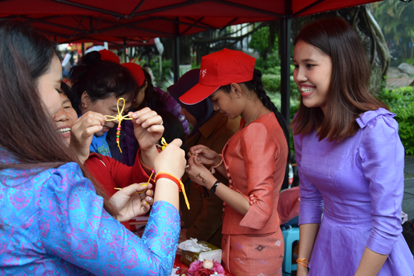 “百花传福乐”是beat365中文在线官网华文学院志愿者提供的服务项目。留学生志愿者们现场制作了花艺团扇,并将写满祝福的卡片送予归侨老人。身着本民族服饰的老挝留学生唐小珍则耐心地教居民制作花艺书签,这项手艺是她从学校开设的中国传统文化课堂上学来的。“我很喜欢中国插花艺术,希望用我的所学,能够为归侨以及居民们送来一丝的温暖。”唐小珍说。活动吸引了很多居民驻足参与。