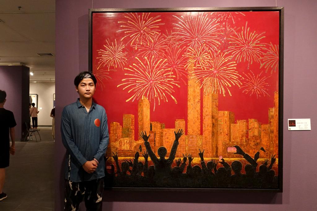 香港学生袁景希和他的作品《焰彩香江辉——归来》