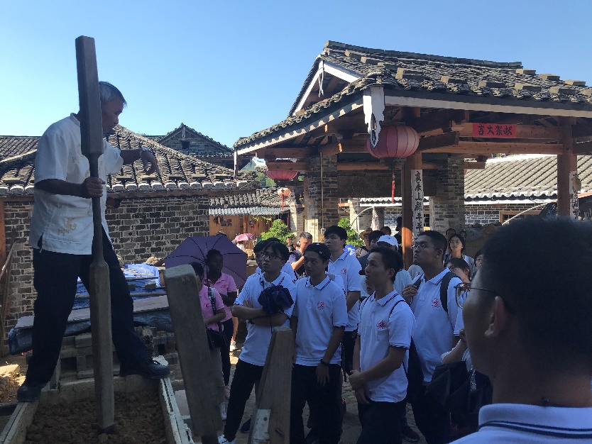 境外生们对土楼营造技艺进行体验