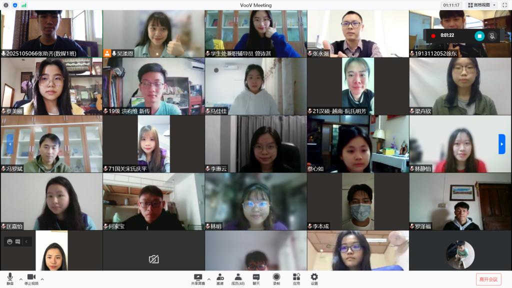 12月5日,由学生处主办、嘉庚学堂承办的陈嘉庚奖学金生线上交流会暨期末考试动员会通过腾讯会议举行。49名陈嘉庚奖学金获得者参加会议,共同交流期末考试备考的方法和技巧。