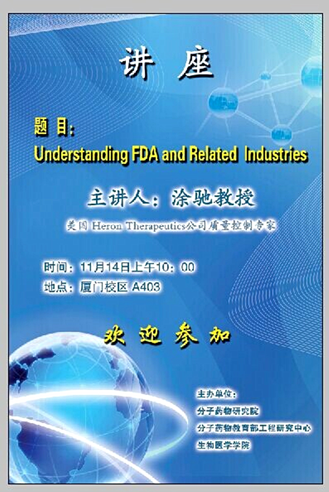 预告:美国HeronTherapeutics公司质量控制专家涂驰教授学术讲座