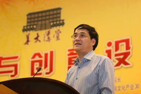 陈少峰教授从“营销之王”史玉柱做广告谈起,在轻松愉悦的气氛中渐入正题,分别围绕:文化与科技时代、文化与文化产业、创意与设计、消费者的变化、奢侈品的文化与创意、数字文化产业、文化创意规律,以及我们的准备等八个方面,生动阐述了通过融入文化的创意与设计,对社会发展、产业腾飞和大学生职业生涯所产生的巨大社会效益和经济效益。