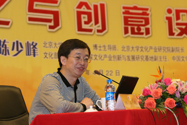 陈少峰教授,现为北大哲学系教授、博士生导师,文化部——北京大学国家文化产业创新与发展研究基地副主任、中国文化产业30人论坛召集人。主要研究领域为:伦理学、管理哲学和文化产业。近年来着重研究社会正义与政府管理、企业家管理哲学和企业文化,以及文化产业的商业模式等领域。多次参加国家部委和省市有关文化产业政策、体育产业、动漫电影、文化出口、青少年文化建设等领域的课题研究或发展规划研究,还先后应邀为各级政府官员和香港文化界解读文化产业政策与趋势。