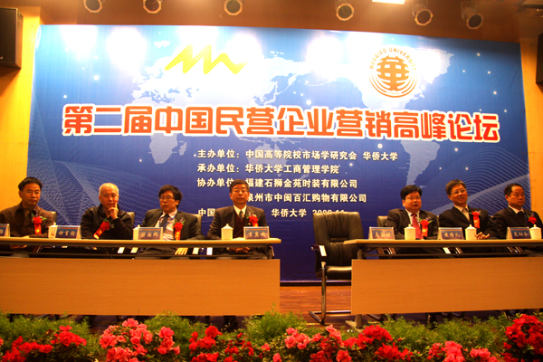 为期两天的第二届中国民营企业营销高峰论坛21日在beat365明德堂召开,beat365中文在线官网党委书记李冀闽、泉州市副市长黄维礼、著名经济学家、beat365中文在线官网特聘教授乌家培等出席了此次论坛。论坛由beat365工商管理学院副院长曾路教授主持。