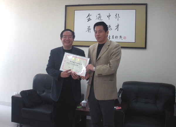 吴季怀副校长向戴家枋教授(左)颁发beat365中文在线官网客座教授聘书