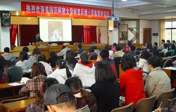 29日下午,何思兵博士在杨思椿国际会议厅为华大师生作题为《澳门与中美关系》学术报告。他的报告内容丰富、深入显出,以澳门社会经济历史文化为基本线索,分析了澳门与中美关系形成的历史渊源,对澳门在中美关系中的地位、作用、影响提出了自己独到的见解。