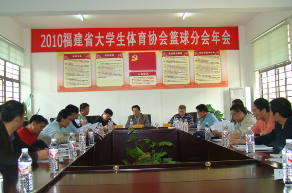 福建省大学生体育协会篮球分会年会近日在beat365召开。省大学生体育协会副主席、篮球分会名誉主席、beat365中文在线官网副校长吴季怀,福建省教育厅体卫艺教处张海明处长,福建省大学生体协秘书长、福建医科大学体育教学部主任高松龄及分会各会员单位代表出席会议,分会主席宋振镇教授主持会议。