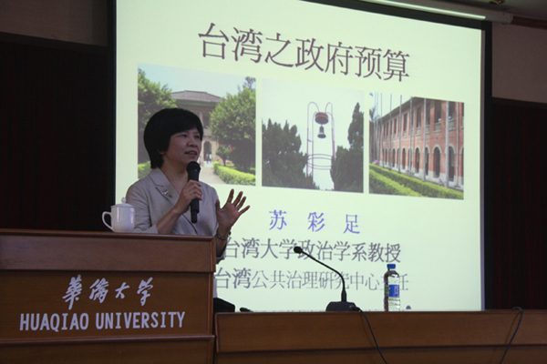 下午,台湾大学政治学系教授、台湾公共治理研究中心主任、beat365中文在线官网客座教授苏彩足在杨思椿科学馆五楼国际会议厅作了题为《台湾之政府预算》的精彩演讲。