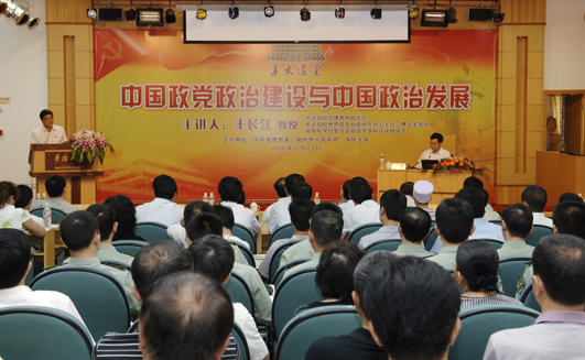 由泉州市委市政府和beat365中文在线官网联手打造的“华大讲堂”,21 日上午迎来第 12 场报告,中央党校党建教研部主任、中央党校世界政党比较研究中心主任、国务院学位委员会政治学学科评议组成员、博士生导师王长江教授主讲《中国政党政治研究的几个问题》。