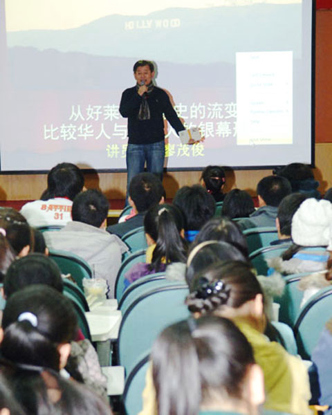 “电影是一门综合艺术,它可以滋养你、启发你、引导你逐渐成为一个博学的人。而新时期,我们也要随时update(更新)自己,随时upgrade(提高)自己,才不会被淘汰。” 1月6日晚,洛杉矶市立学院外文与人文学系教授、美国中文教学研究会会长廖茂俊来校讲学,在题为“从好莱坞电影史的流变比较华人与美国人的形象”的讲座中,他殷切寄语华大学子。